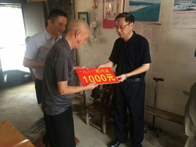 在”八一“建军节前夕,7月31日,县委副书记、县长李斌赴涛城镇凤和村看望慰问抗日老战士刘义祥,并送上节日祝福和崇高敬意。副县长王勇参加慰问。县民政局、涛城镇负责同志随行。