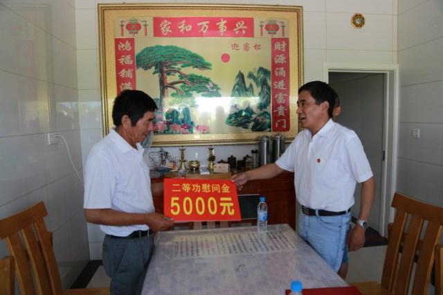 7月28日下午,县政协主席陈向阳、副县长王勇到飞鲤镇走访慰问荣立二等功的现役军人陈木财的父母,并送去立功喜报和慰问金。县民政局、飞鲤镇负责同志陪同。