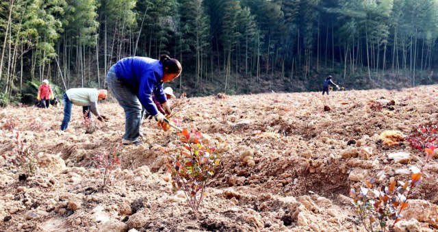 初冬时节,在该乡四青村蓝莓生态园,十来位村民正忙着营造新的蓝莓园。他们三五人一组:整地、施肥、运送和栽种蓝莓苗,各就其位、各司其职;大家通力协作,有序忙碌——很快,一垄垄红绿相间的蓝莓苗,在冬日暖阳的斜照下,翠生生落户在黄土岗上。