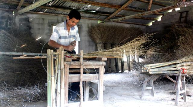 “夏桥的扫把老板用三轮车把竹丫丝、扫把把子等原材料送来,我就在家门口扎扫把,扎个十来天,就打电话叫老板开三轮车来拖,发货付钱,工资不拖欠。” 王玖林对这种“订单式”来料加工副业很满意,“一天能挣个六七十块,反正天天有做的,积少成多吗。”