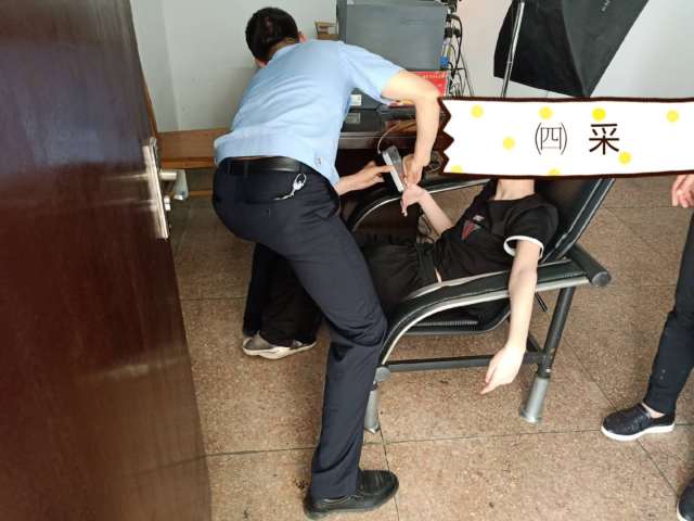 照片采集好,开始指纹采集,可是佳佳明显变得焦躁起来,一直抵抗,不断把手抽回,不愿配合,邢雁奎又搬来一张椅子,让佳佳可以半躺着舒服一些,趁着孩子情绪有所好转,邢雁奎顾不得擦拭头上的汗,一个弯腰加大跨步采集着指纹,同时用身体另一侧护着佳佳,防止他摔落。