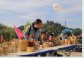广场旁的展示区内,宣州石砚、古南丰徽派黄酒、姚村闷酱等非物质文化遗产展示吸引了不少游客围观