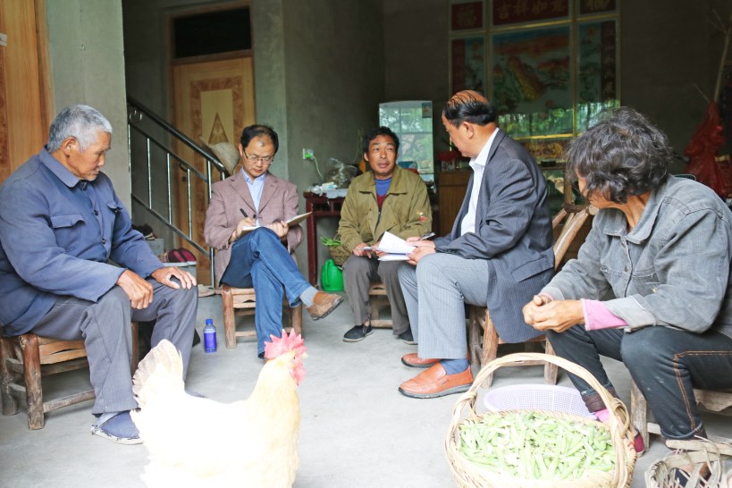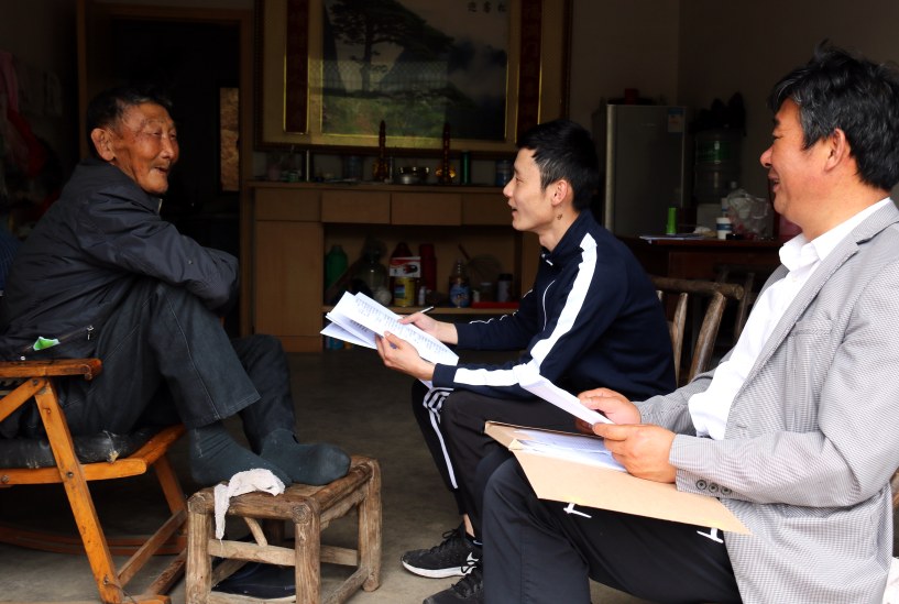村干部与扶贫干部走访天子湖村胡家湾组“边缘户”王正炳户